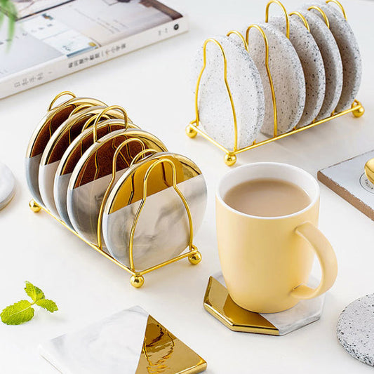 Aurina | Marmor Glasunderlag med Guldfarvet Holder