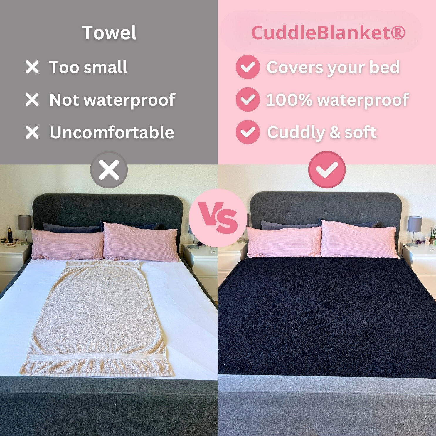 ✔ Stor størrelse – ideel til sofa, seng eller til at dele med din partner
