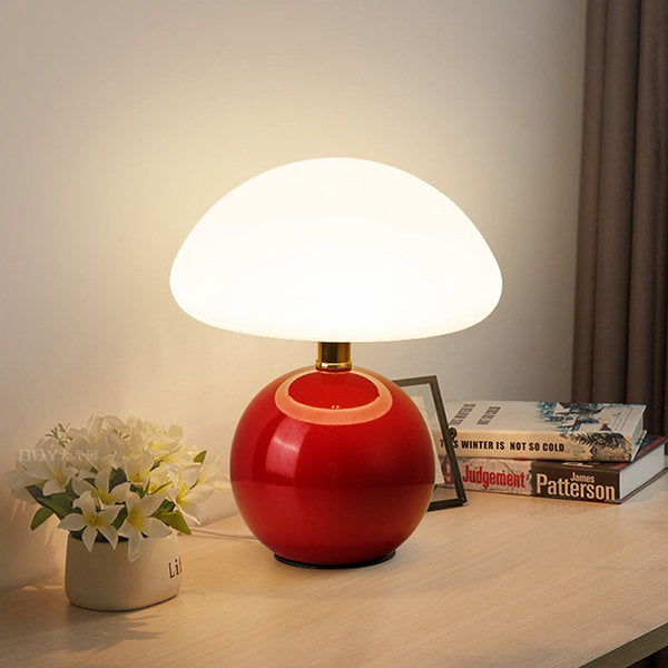 Leder du efter en stilren bordlampe, der ikke bare giver lys, men også fungerer som et statement? Denne kompakte designlampe fra Zenitize kombinerer en sfærisk keramisk fod med en bred svampeformet skærm og skaber en varm, beroligende atmosfære. Det minimalistiske design passer sømløst ind i både moderne og retro interiører. Perfekt som natlampe, skrivebordslampe eller dekorativ accent i stuen – denne lampe tilfører øjeblikkeligt karakter til ethvert rum.