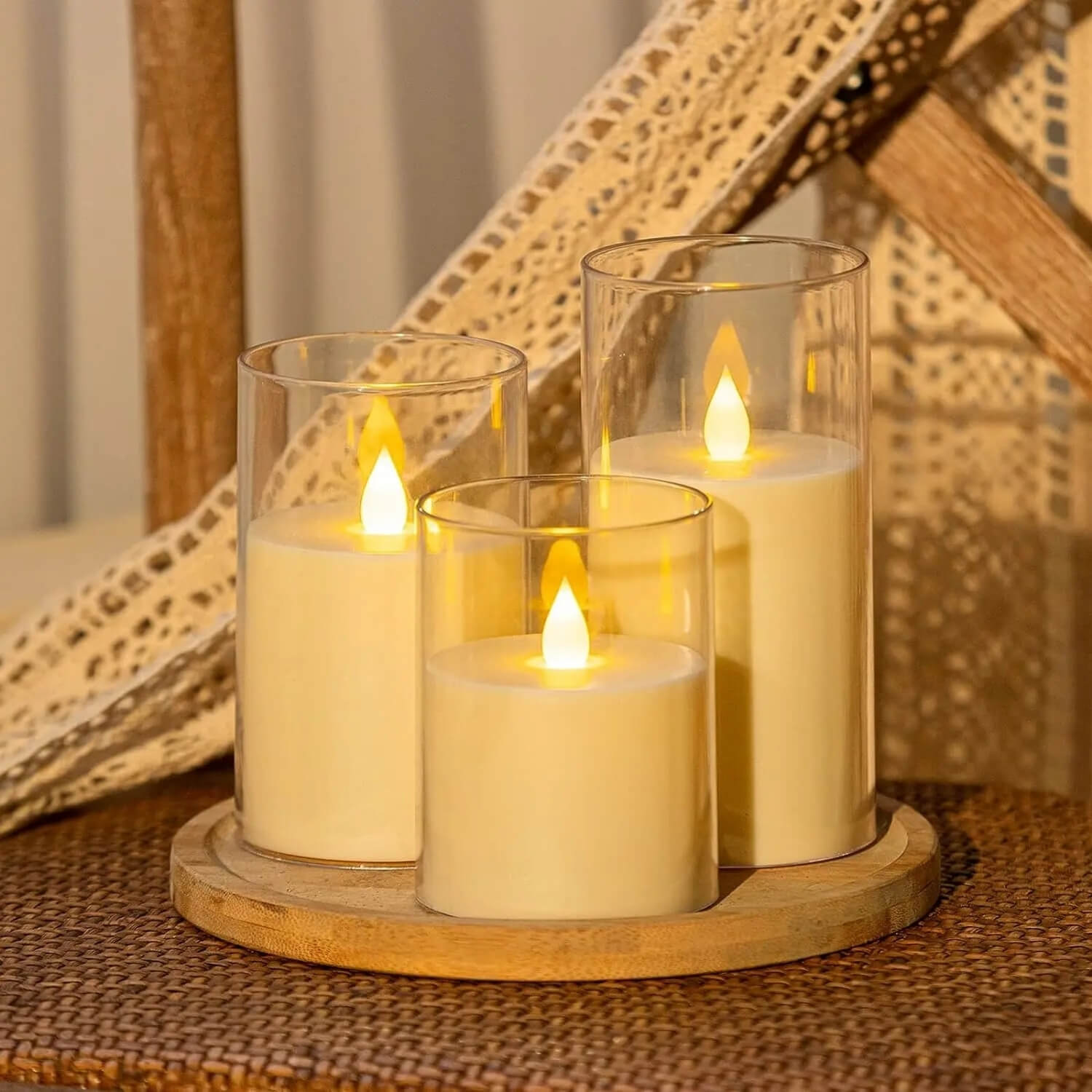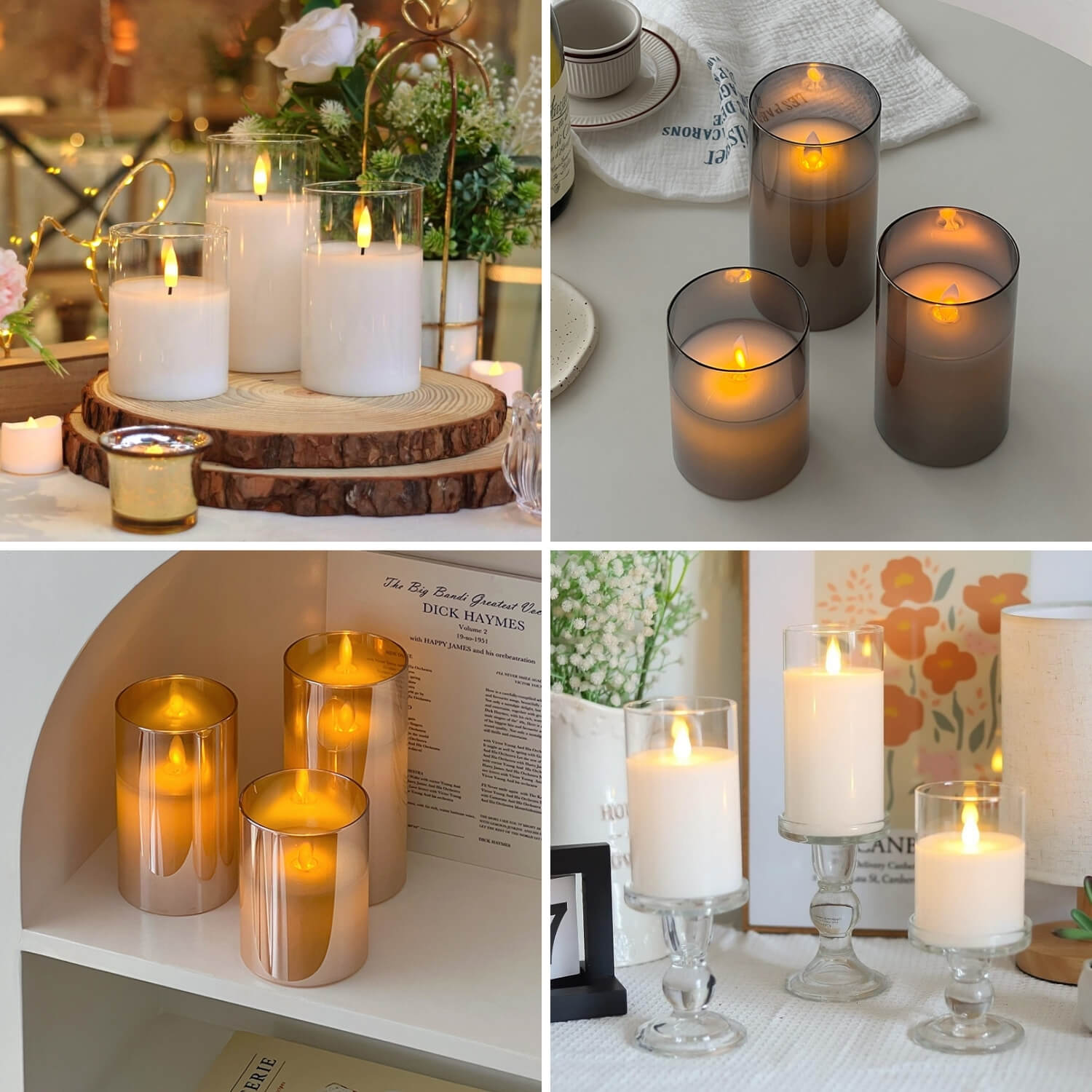 Flamora forvandler hvert rum til et varmt og indbydende sted. Sættet består af tre elegante LED-lys i forskellige højder, indrammet i stilrent glas og med en naturtro flamme, der blafrer som et rigtigt lys. Vælg mellem røgfarvet, hvidt eller ravfarvet glas – perfekt til at skabe hyggelig atmosfære uden åben ild.
