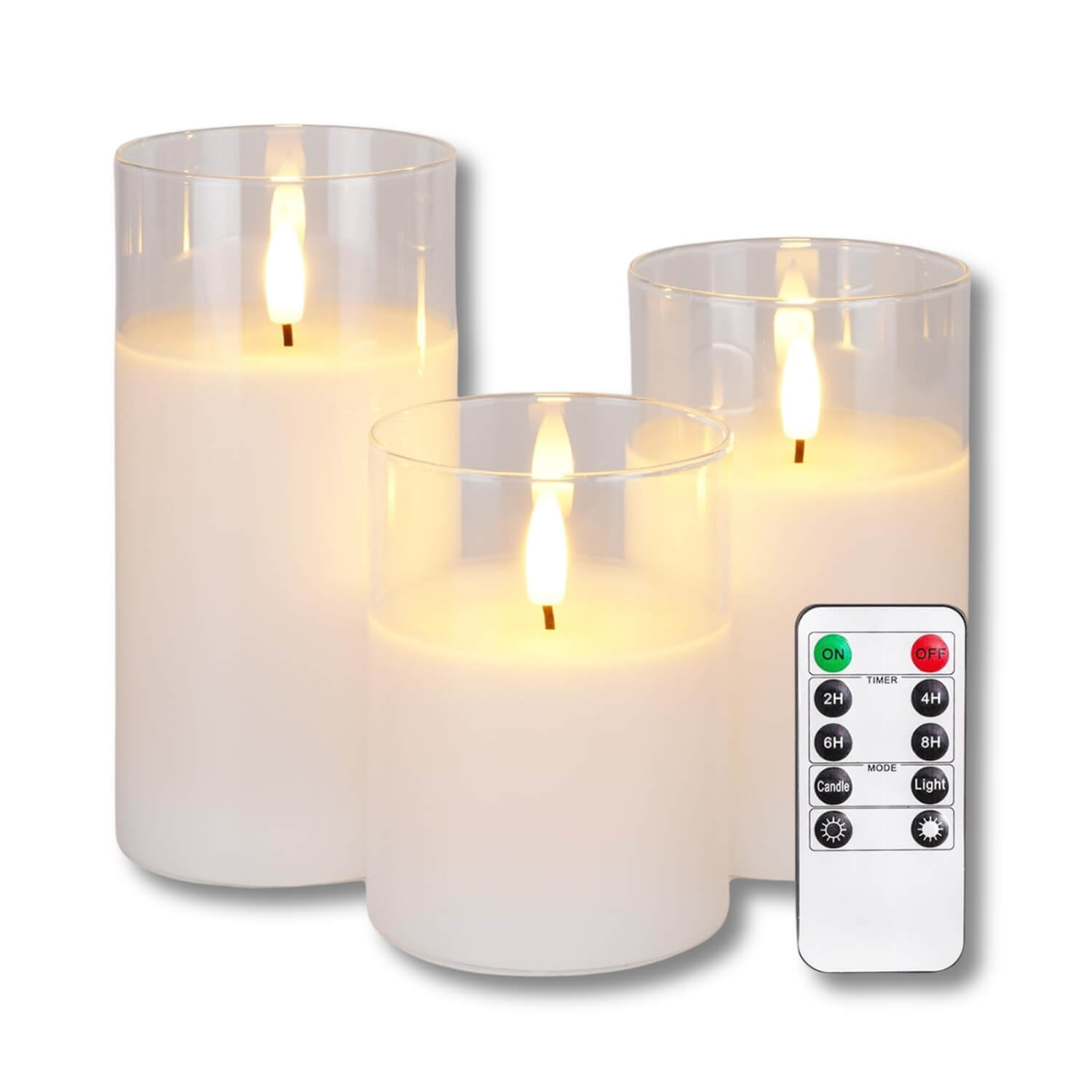 Flamora | LED Lysesæt med Flamme & Fjernbetjening