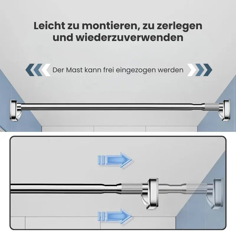 FlexiStång er løsningen til dig, der vil have en robust og fleksibel stang uden at ødelægge væggene. Med sit smarte twist & lock-system monterer du nemt en justerbar stang mellem to flader – perfekt til bruseforhænget, garderoben eller køkkenopbevaringen. Slip for unødige huller og nyd en hurtig, skånsom installation, der holder i fugtige og krævende miljøer.