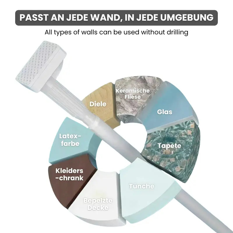 ✔ Justerbar længde for perfekt pasform mellem vægge