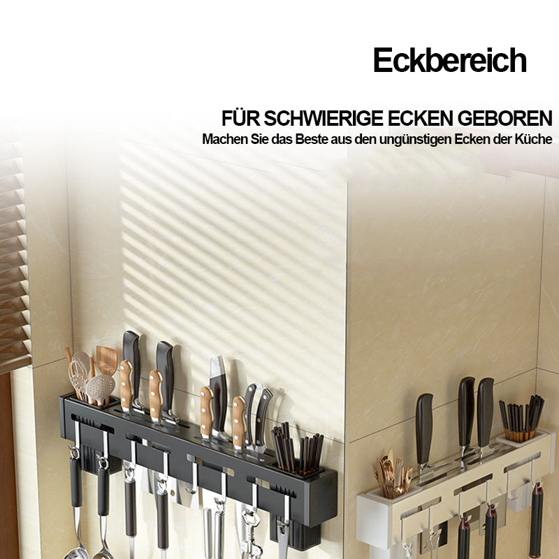 Kitchora er den multifunktionelle køkkenhylde på 60 cm, der hjælper dig med at organisere dine køkkenredskaber på en smart og elegant måde. Med integreret knivblok, kroge til skeer og stegespatler samt praktiske fag til småredskaber maksimerer den din vertikale opbevaring og holder bordpladen fri for rod. Perfekt til moderne og industrielle køkkener.
