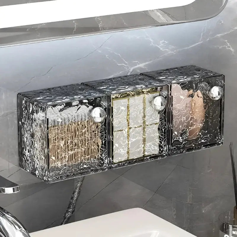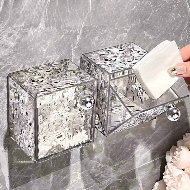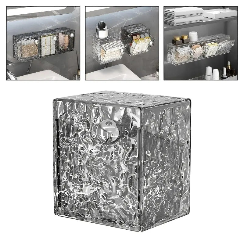 Klaris er den perfekte løsning til dig, der vil have styr på de små ting uden at gå på kompromis med designet. Den vægmonterede kube i struktureret akryl ligner et kunstværk, samtidig med at den giver praktisk opbevaring med en glidende udtræksskuffe. Slip for rod på bordet og nyd en pæn og hygiejnisk plads til dine