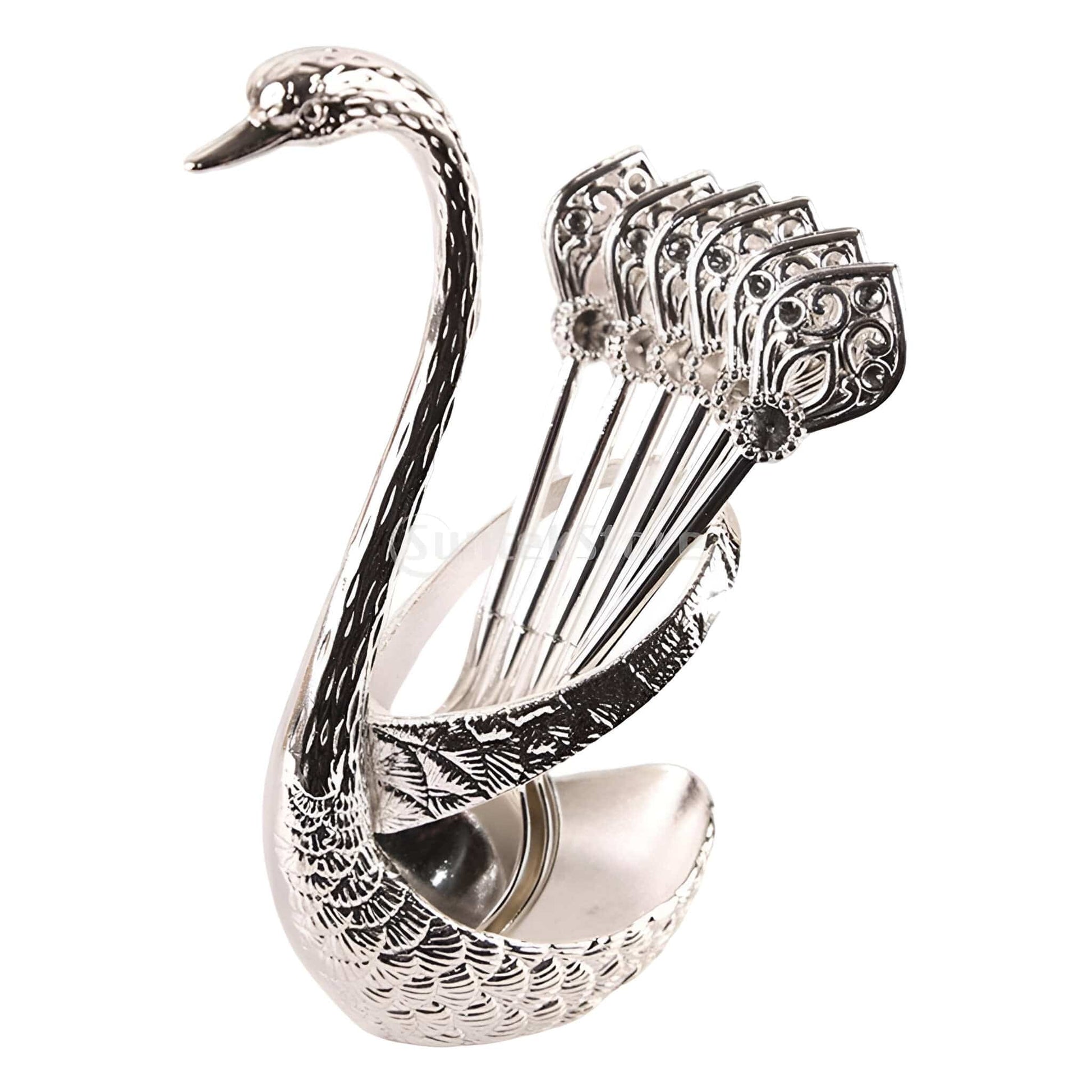 Éloïse er mere end et skesæt – det er et blikfang. Den svaneformede holder i guld- eller sølvfinish giver enhver opdækning et sofistikeret skær, mens de seks dekorative skeer løfter alt fra espresso til dessertservering. En lille detalje med stor effekt.