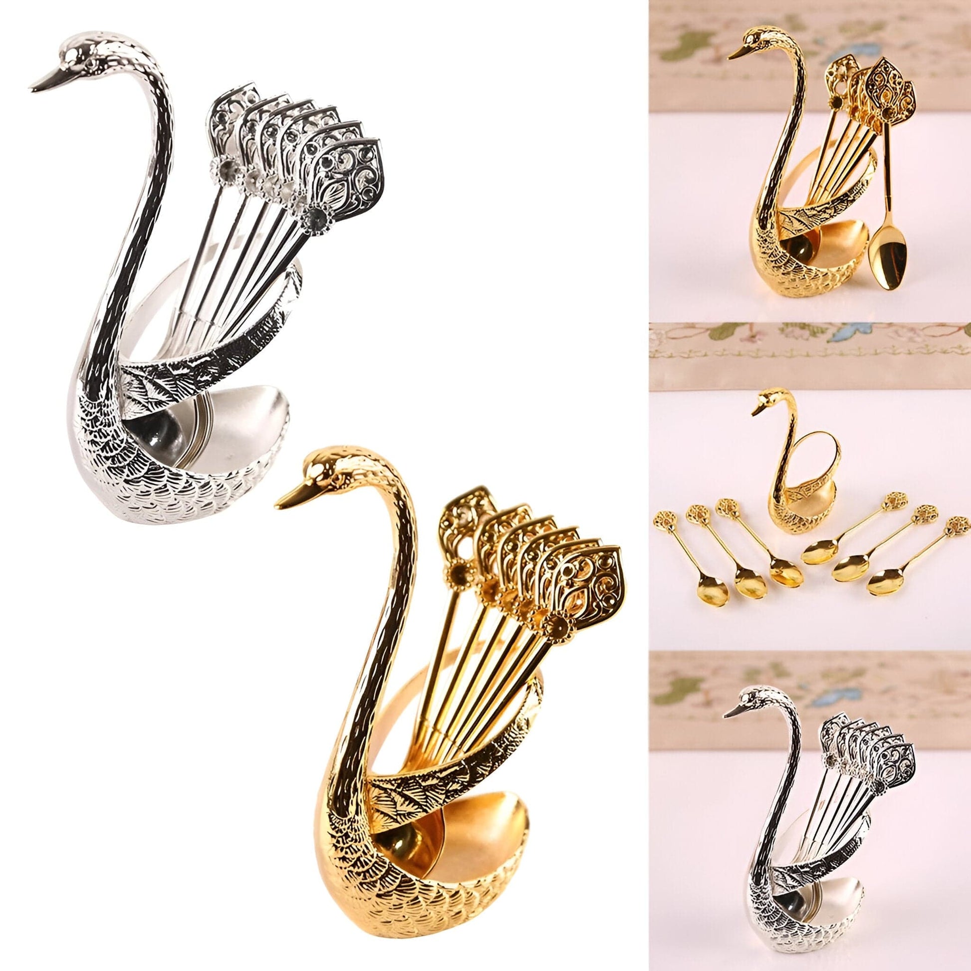 ✔ Svaneformet holder – strålende i guld- eller sølvfinish