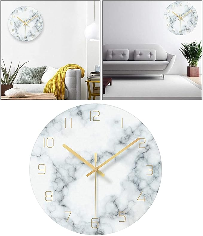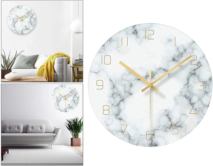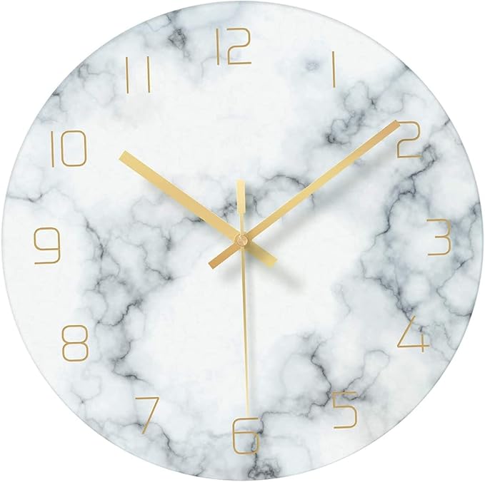 Lunara er et lydløst vægur i rund design med hvid marmorlook og gyldne detaljer. En perfekt balance mellem stil og funktion til moderne hjem.