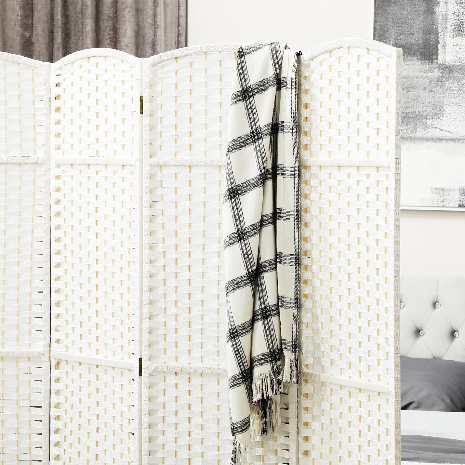 Denne hvide rumdeler er den perfekte løsning, når du vil skabe zoner i dit hjem på få sekunder. Brug den til at afskærme soveområdet, skjule rod eller skabe en rolig arbejdsplads – helt uden faste vægge eller store ændringer i indretningen.