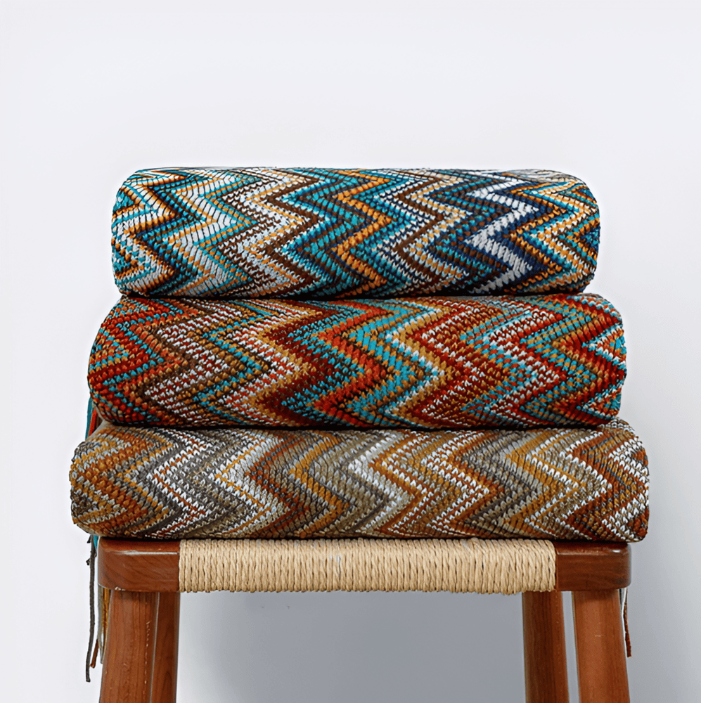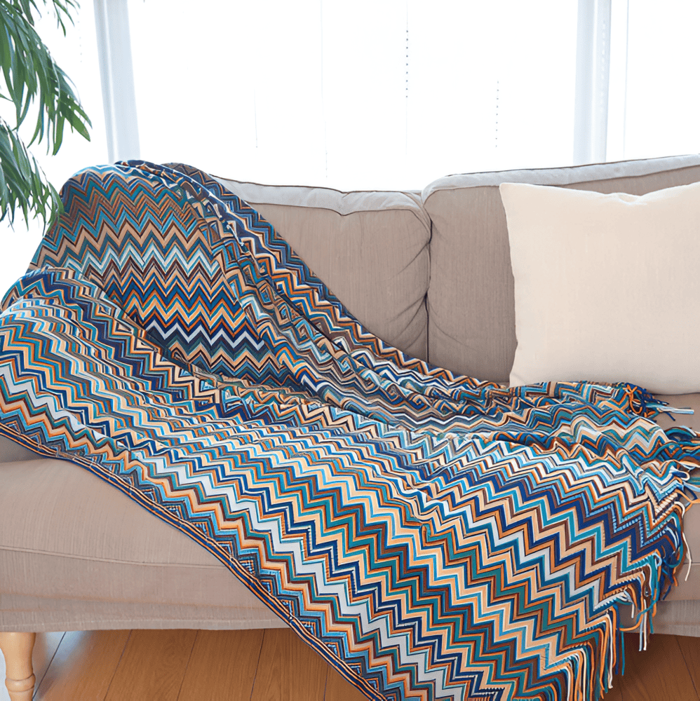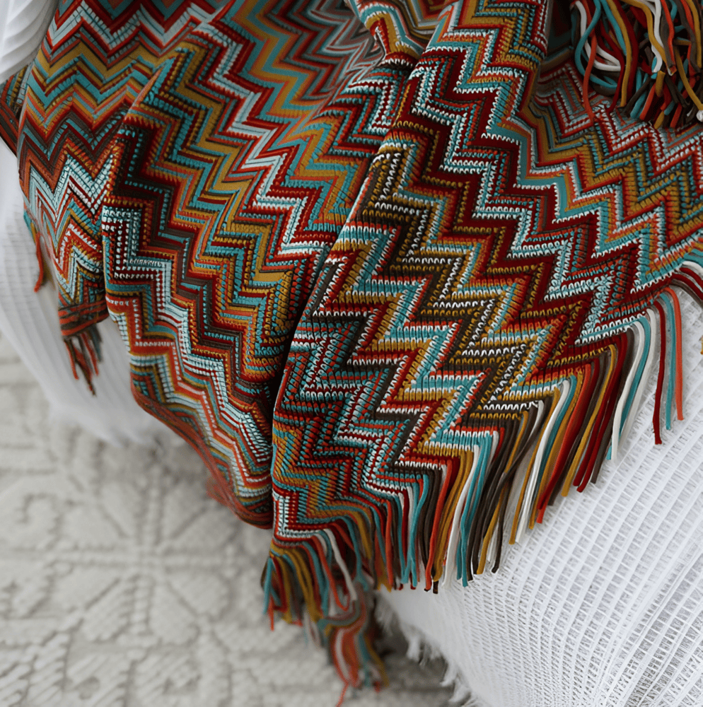 Luzia | Flerfarvet Boho Plaid med Zigzagmønster og Frynser