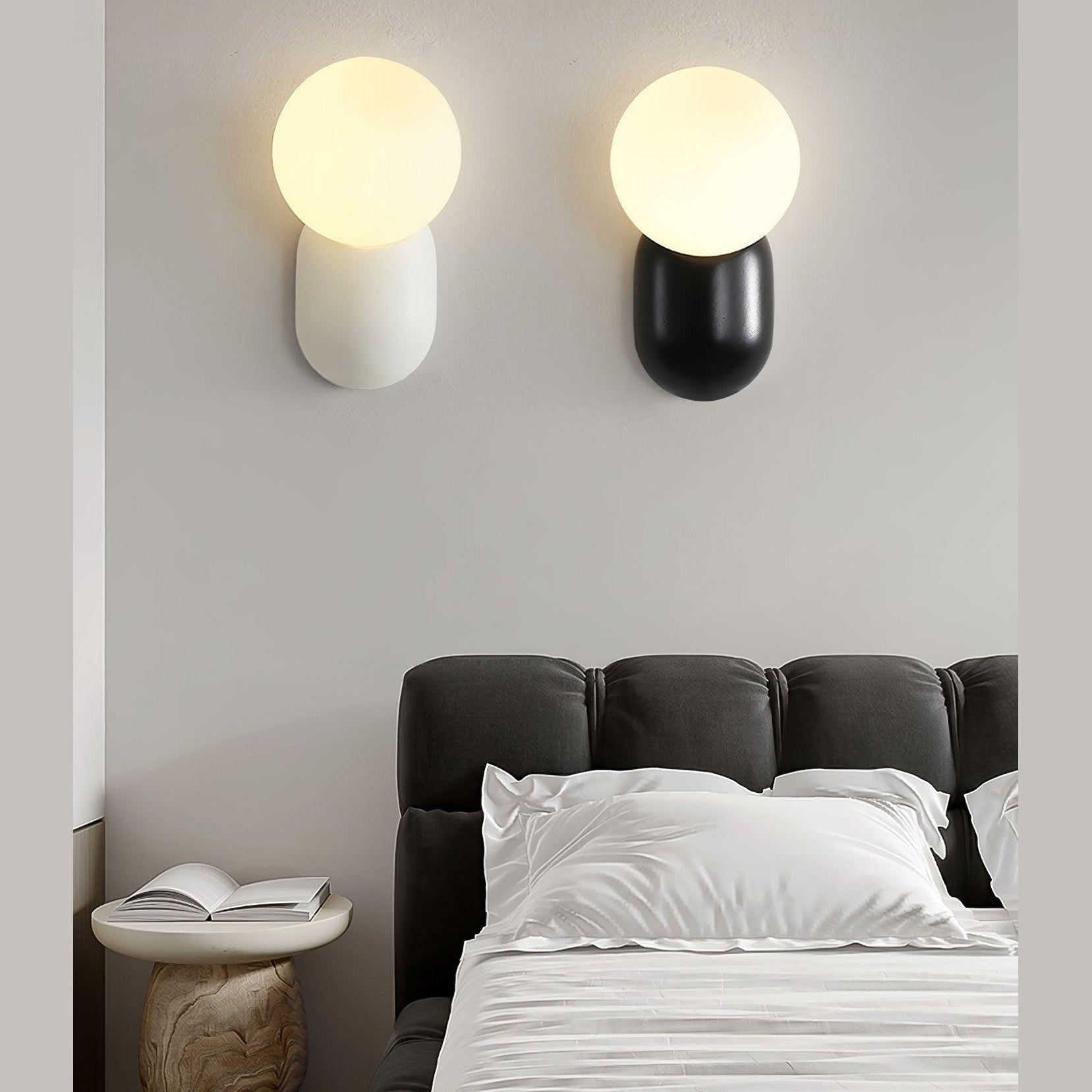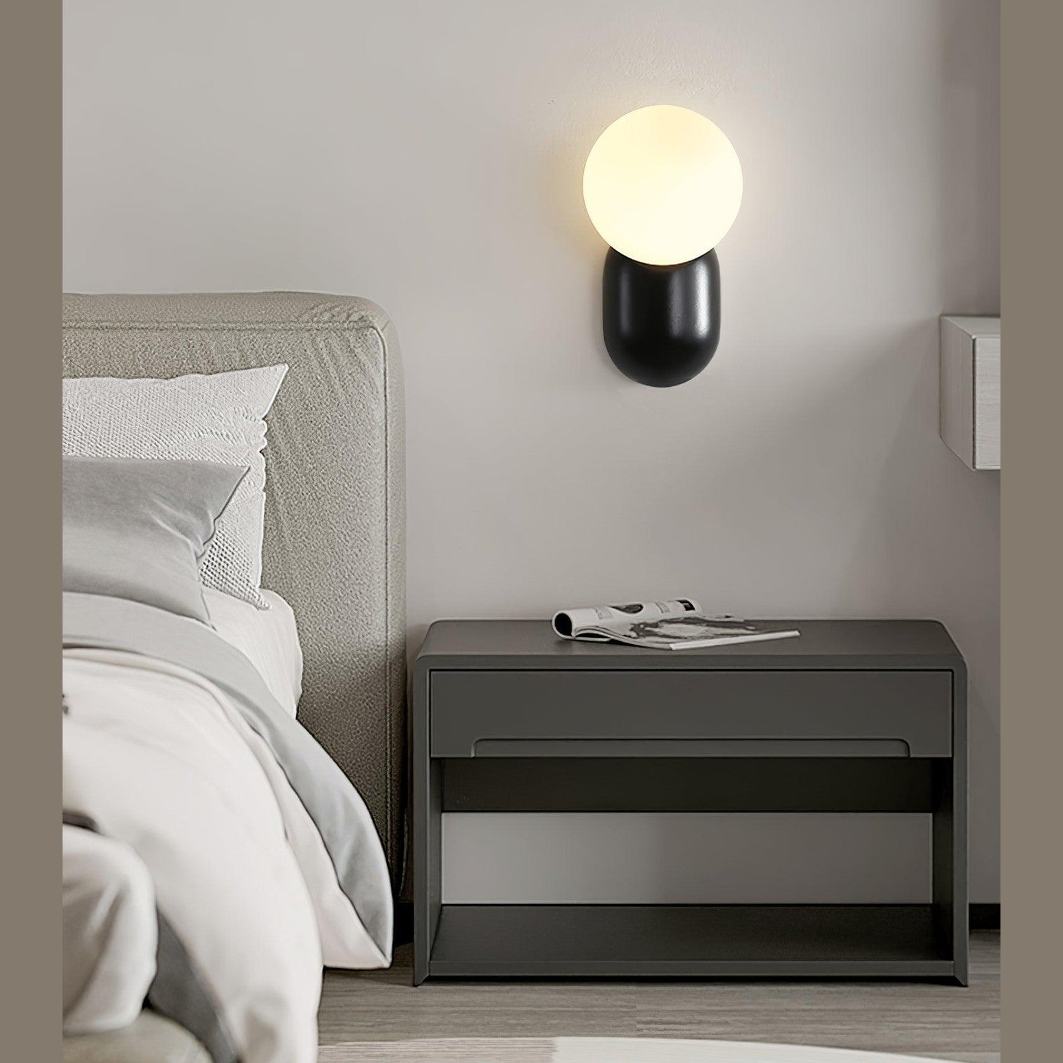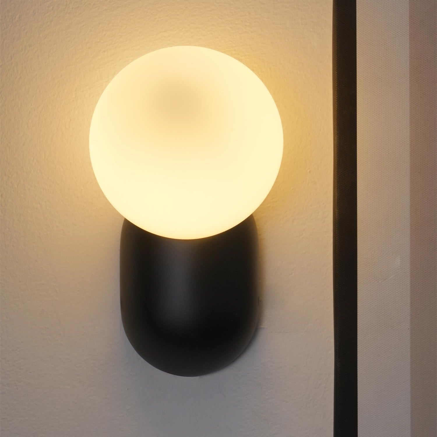 ✔ Mat sort vægbeslag og opalhvid glasglob – minimalistisk og tidløs