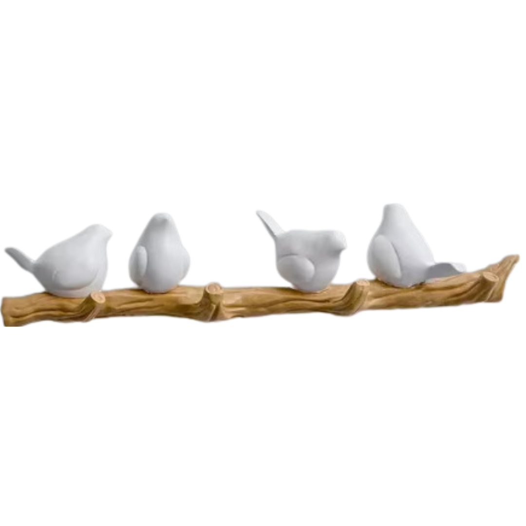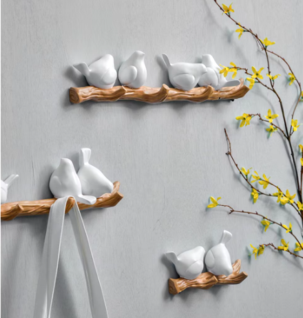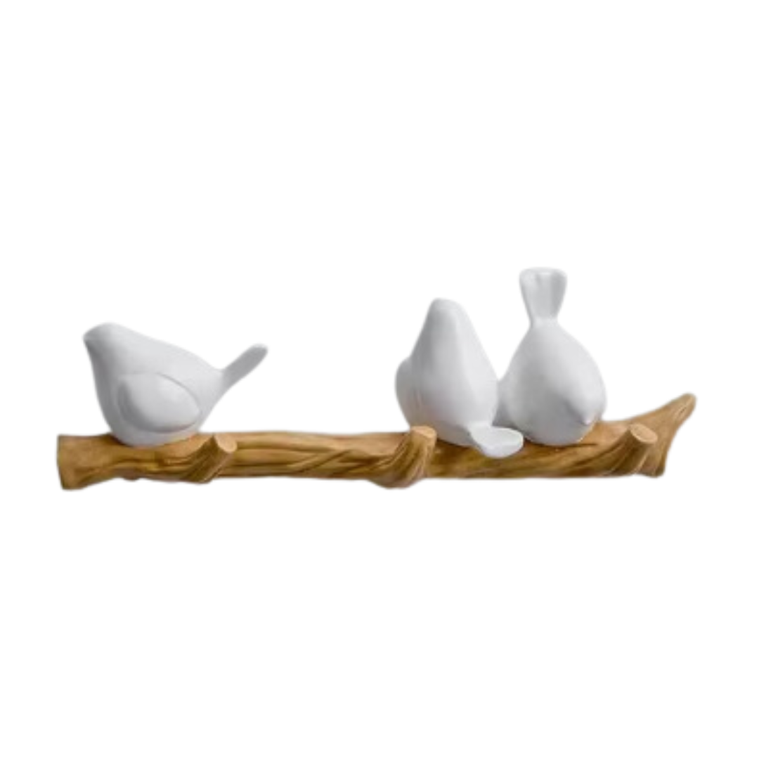 Pivora er ikke bare et sæt vægkroge – det er en fortælling på væggen. De hvide keramiske fugle, der sidder på grenen, skaber en varm og indbydende følelse, samtidig med at de giver praktisk ophæng til jakker, tørklæder eller nøgler. Perfekt til dig, der vil kombinere naturinspireret dekor med hverdagsfunktion.