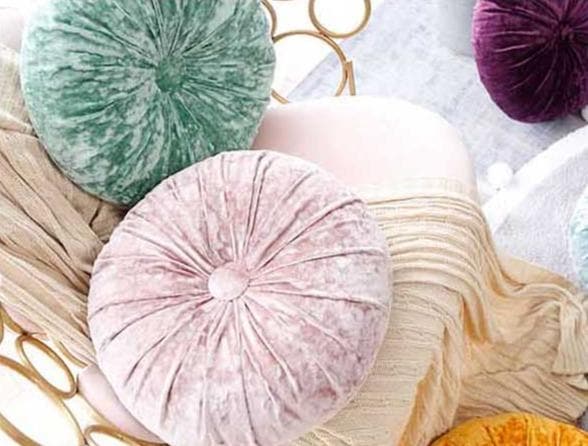 Rosava | Rundt Fløjls Pudebetræk med Knap & Folder