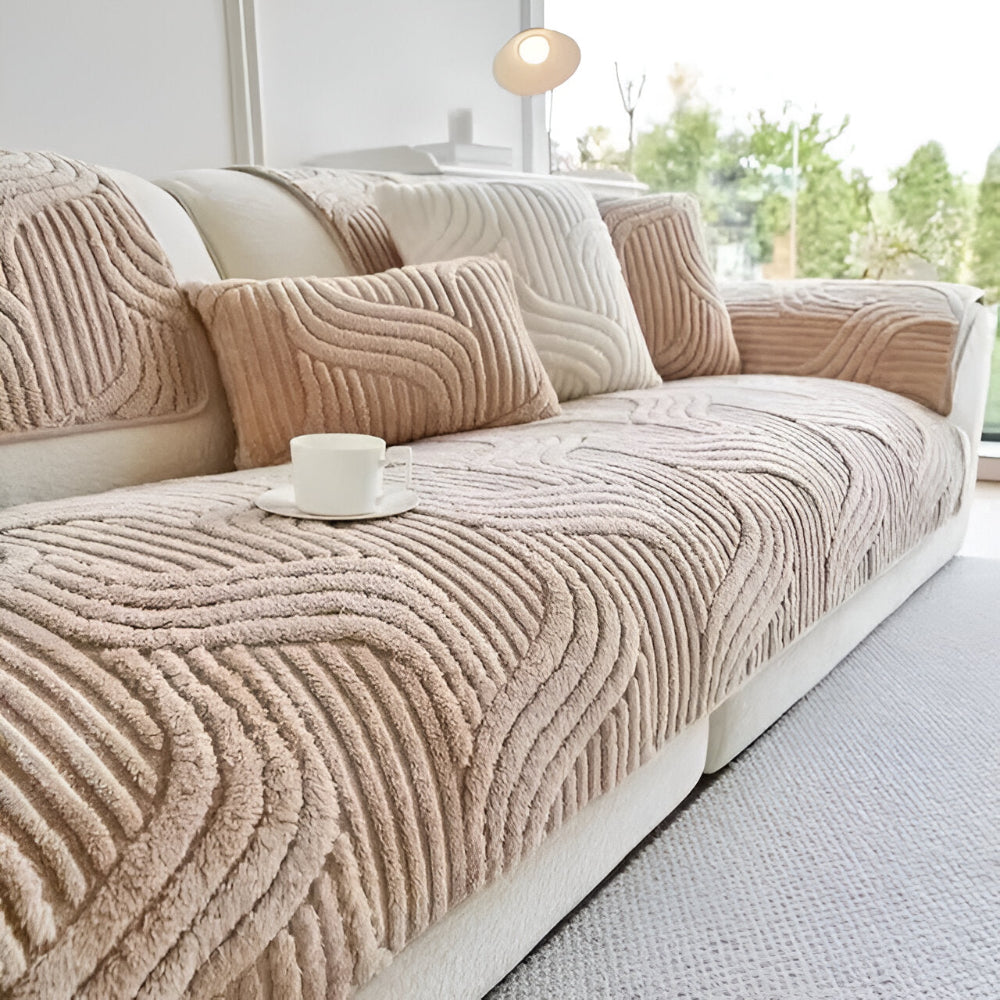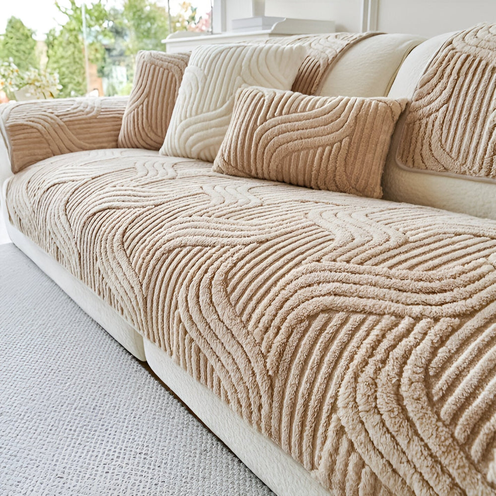 SoffLuxe | Blødt Sofaovertræk i Plaid-Fleece med Bølgestruktur