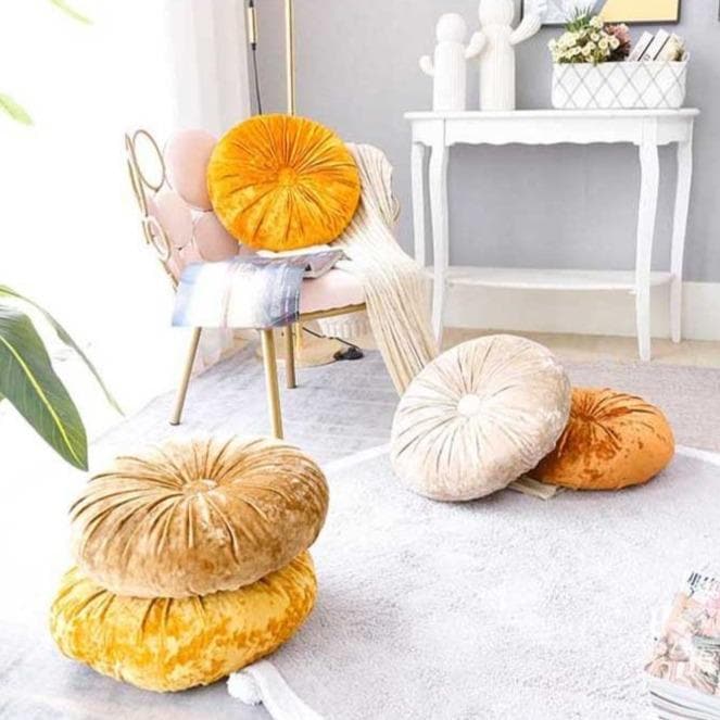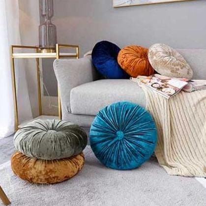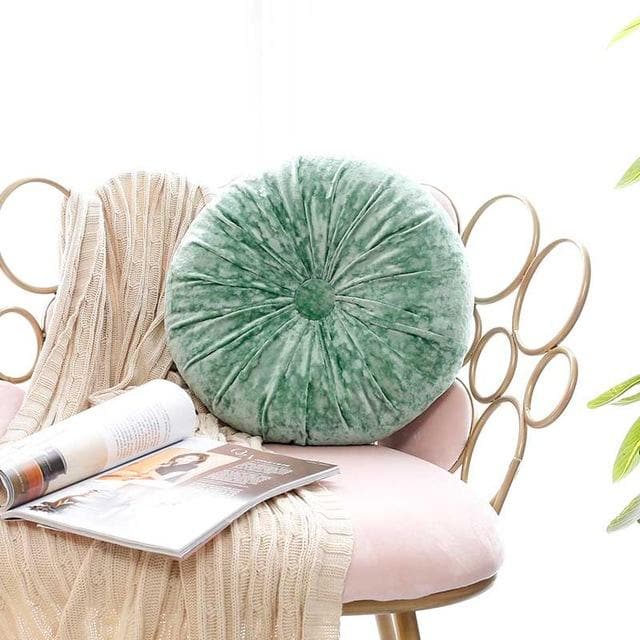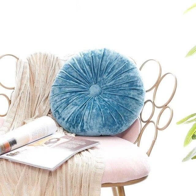 Velura er en rund pyntepude i luksuriøs fløjl, som kombinerer komfort og design i perfekt balance. Med sin bløde overflade, diskrete glans og karakteristiske midterknap bliver den et elegant blikfang på sofa, lænestol eller seng.
