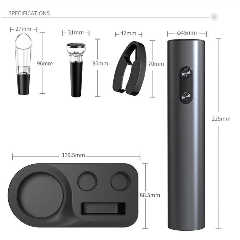 Vinalux tilt wijn openen naar een hoger niveau van comfort en stijl. De elektrische kurkentrekker verwijdert moeiteloos elke kurk binnen enkele seconden, terwijl het elegante oplaadstation en de accessoires zorgen voor een complete, verfijnde wijnervaring.