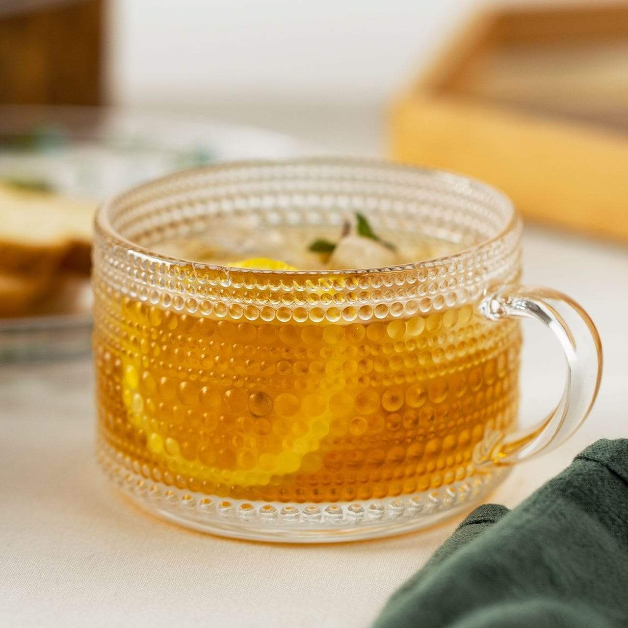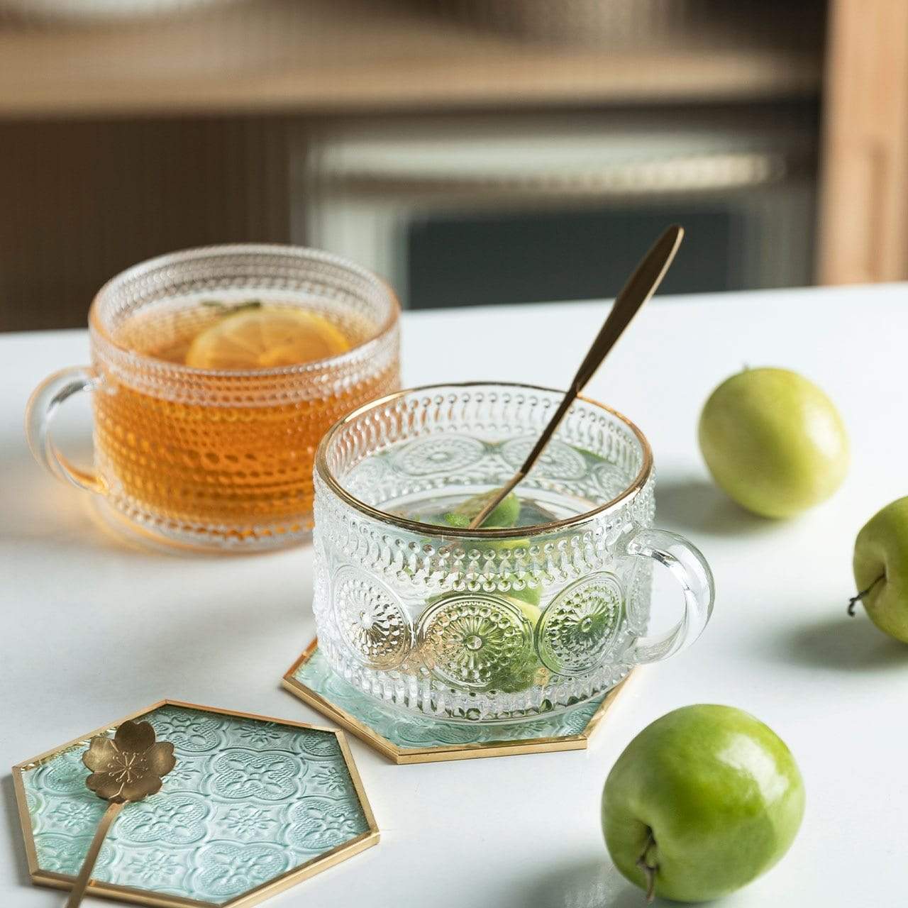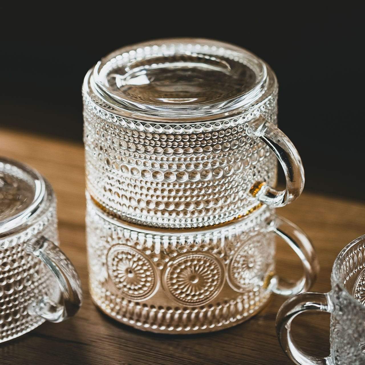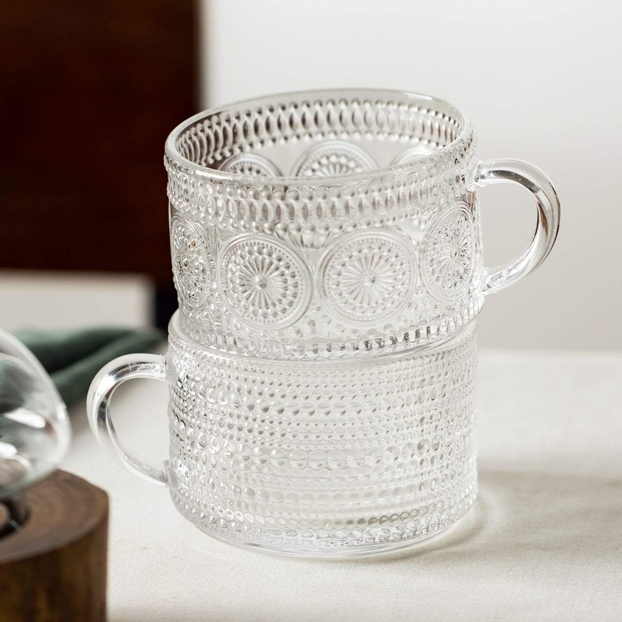 Vintessa er mere end bare et krus – det er et dekorativt blikfang, der forvandler enhver kaffepause til noget særligt. De transparente glas med elegant graveret mønster minder om klassisk krystalglas, men med et moderne twist. Perfekt til te, kaffe eller kolde drikke – både til hverdag og fest.